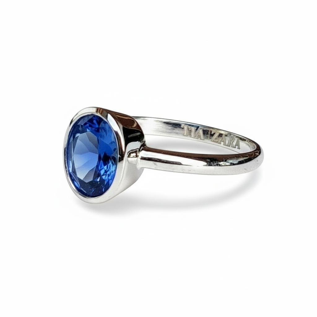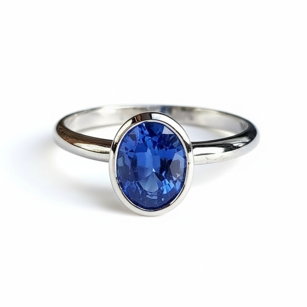 - Ring style: Bezel Ring with Natural Blue Sapphire