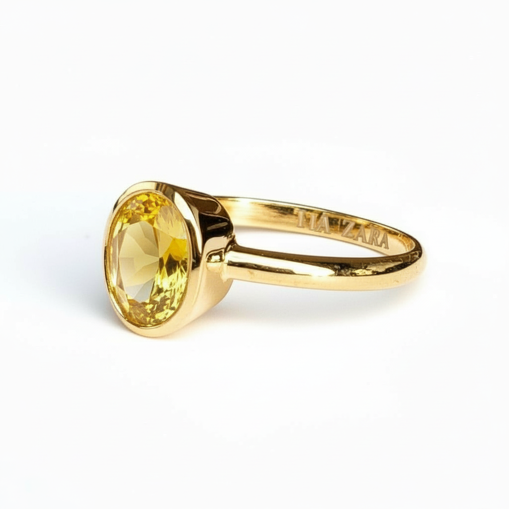 - Ring style: Bezel Ring with Natural Yellow Sapphire